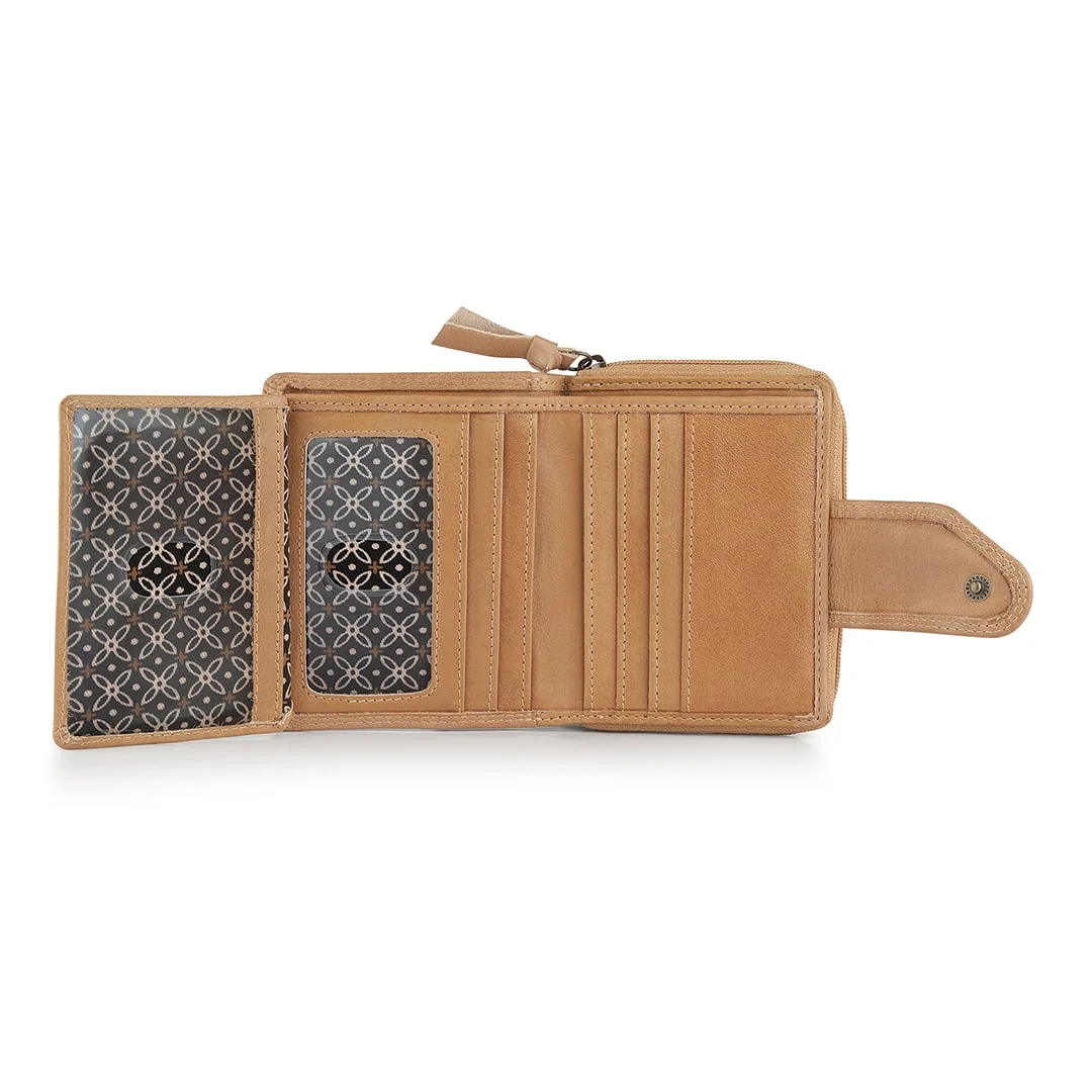 Primehide RFID “Paloma” Washed Cancun Medium Trifold Leather Purse – Sand