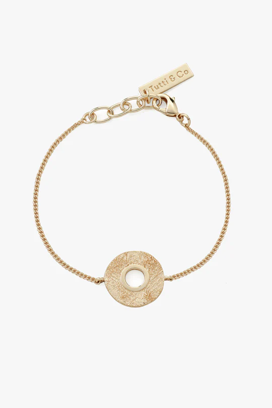 Noa Round Ceramic Bracelet, Gold Plated Stainless Steel Frame – Robin