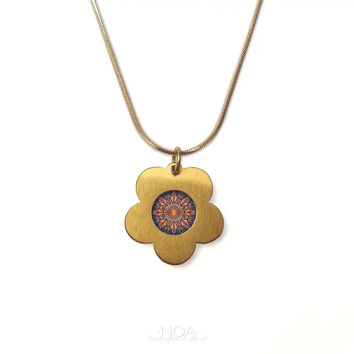 Noa Flower Pendant with A Decorated Ceramic – Green Mandala