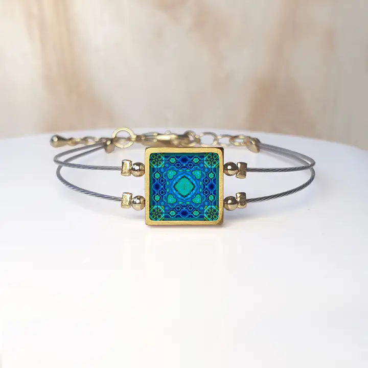 Noa Framed Square Ceramic Bracelet, Gold Plated Stainless Steel – Oriental Rug