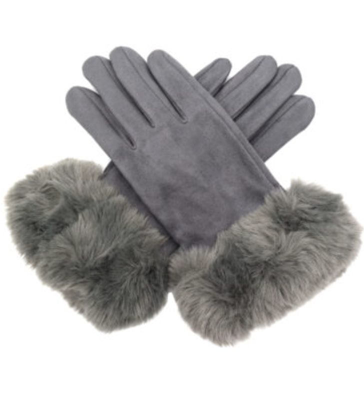Millie Mae “Gabby” Gloves with Fur Edge – Grey