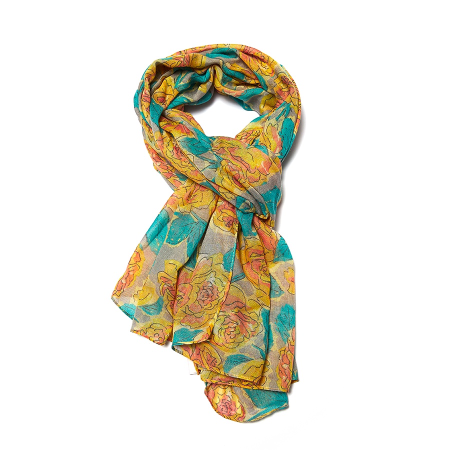Earth Squared “Spring” Flower Scarf – Grey Spring Flower