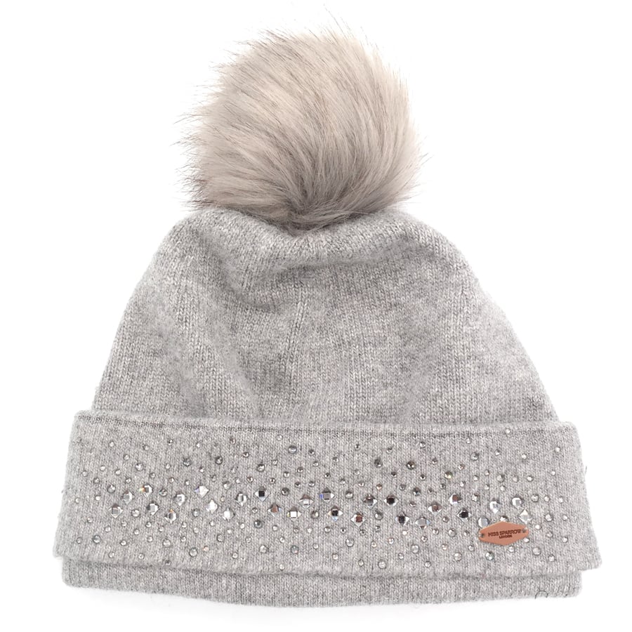 Pia Rossini “Drew” Diamante Embellished Beanie Hat – Silver Grey