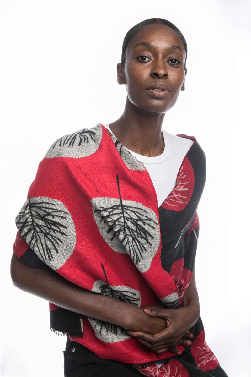 Pia Rossini “Freya” Blanket Scarf – Black/Red