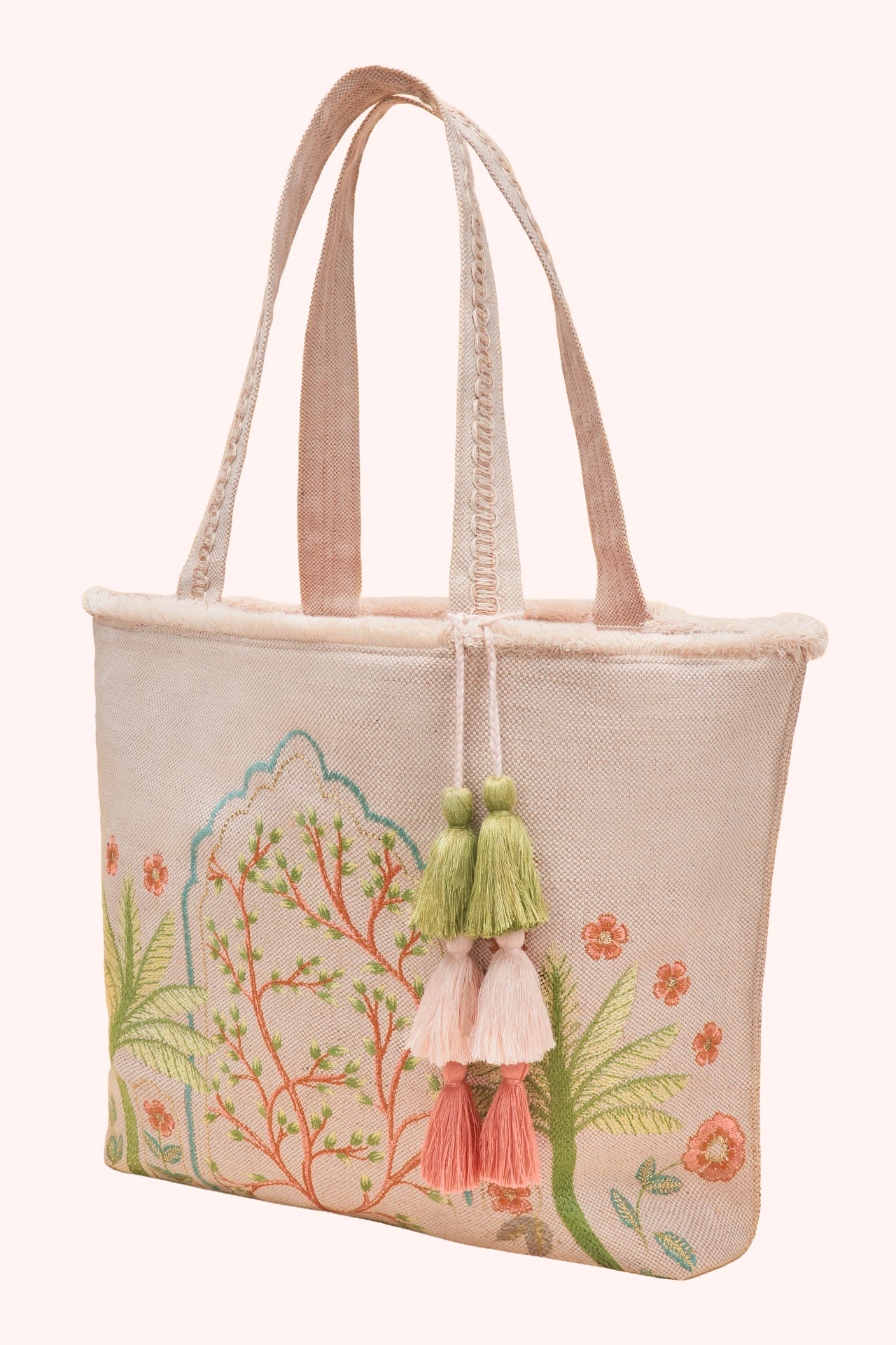 Powder Fringed Box Tote Bag – Patterned Palm