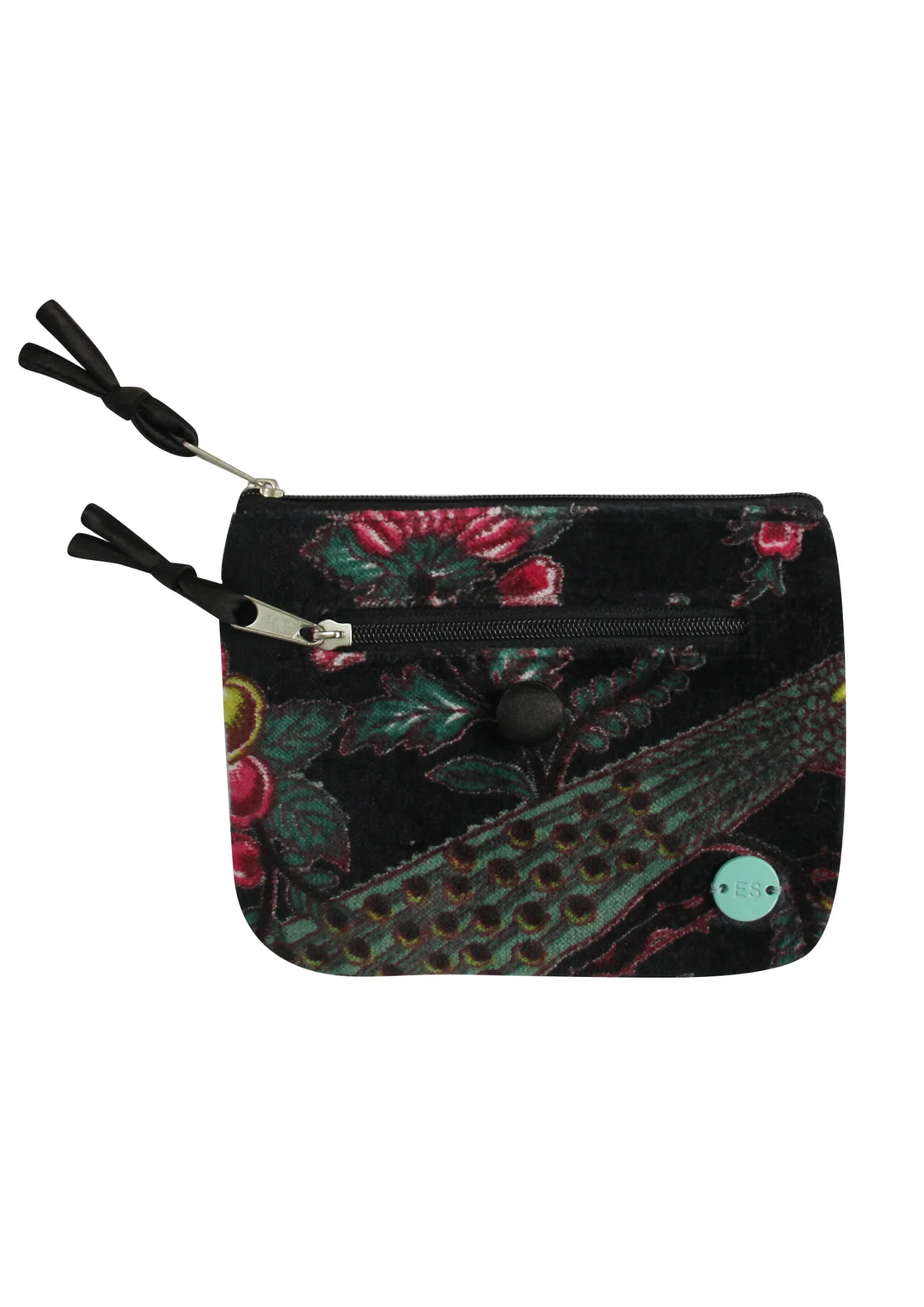Earth Squared Printed Velvet “Emily” Purse – Black Botanical Velvet