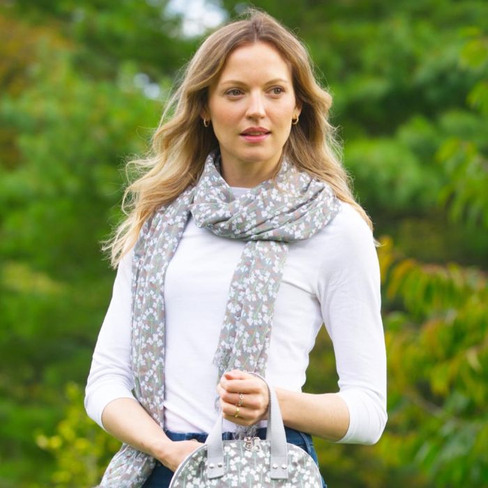 Earth Squared “Spring” Flower Scarf – Grey Spring Flower