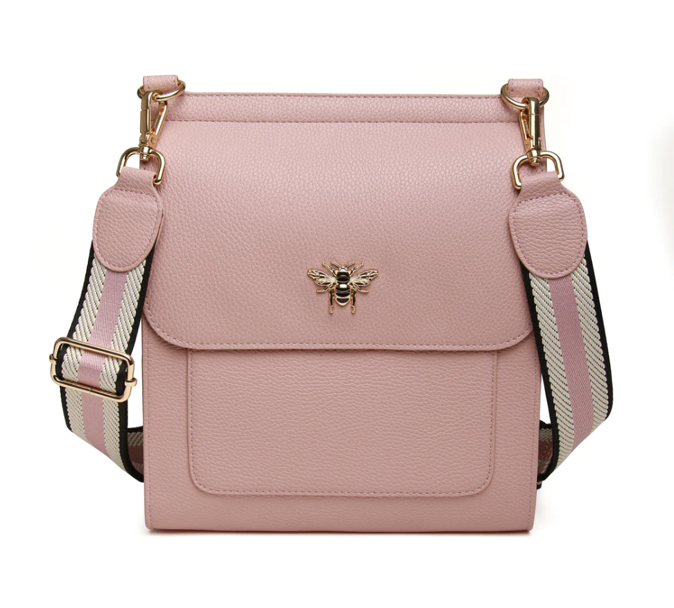 Bloomsbury messenger is the ultimate must have cross body bag, featuring super textured vegan leather, gold toned metalware including removable clasps, magnetic closing and Alice Wheeler signature honey bee insignia which provides that additional flourish and quality synonymous with Alice Wheeler designs. The designer strap is fully adjustable and can be removed should you feel inclined to up-style or customise using one of Alice’s many designer straps.