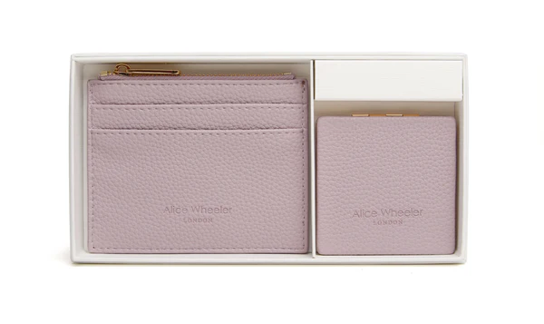 Presented in a luxurious white gift box, the set includes a Verona coin and card purse, crafted from smooth vegan leather for a touch of elegance. The purse is designed to be compact, easily fitting into a pocket or purse, yet it provides ample space for coins and cards.
