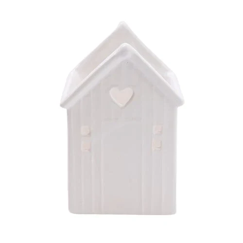 Bring a bit of the seaside to your home with this cute Tea Light holder. This adorable ceramic candle holder mimics a beach huts cute detailing and a cut out heart.