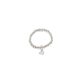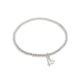 Silver plate bead bracelet on stretch elastic with three mini heart charms.