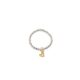 Silver plate bead charm ring on stretch elastic with a silver heart charm.