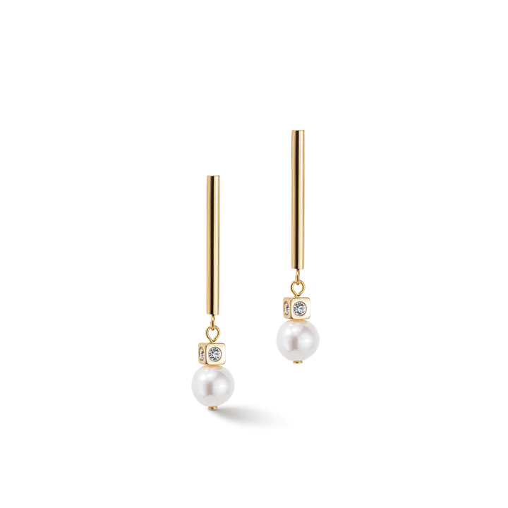 Made from genuine freshwater pearls, shimmering pavé-set crystals and fine gold stainless steel, these classic, elegant earrings are bound to turn heads.