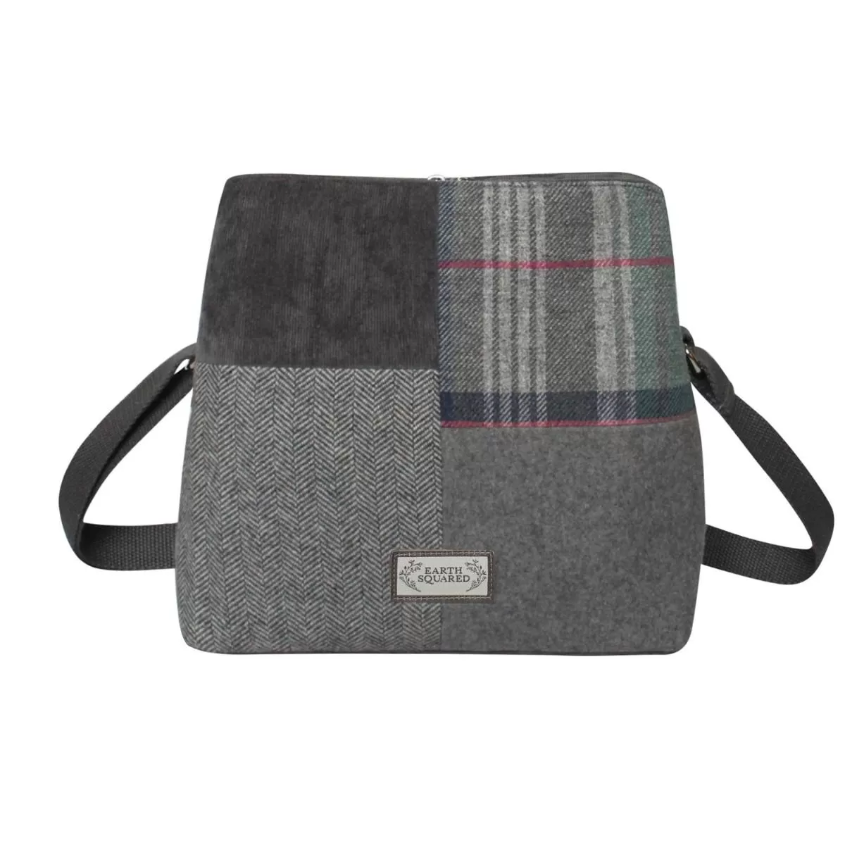 Patchwork Logan bag has three main compartments, the central one is zipped for security and the two outer ones have magnetic fastening. With cord trim, 100% recycled polyester lining and adjustable cross body strap.
