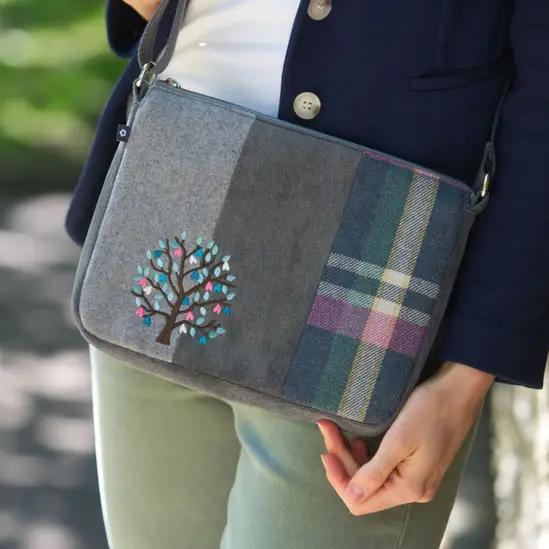 Designed in a classic grey wool-blend tweed, this Earth Squared Messenger Bag features a charming appliqué tree motif stitched on the front – a subtle, countryside-inspired detail that adds warmth and character to this everyday essential. Its compact yet practical shape is ideal for carrying your daily items in style, whether you’re heading to the shops or strolling through the countryside. The muted tones and handcrafted feel make this bag a perfect complement to relaxed country fashion.