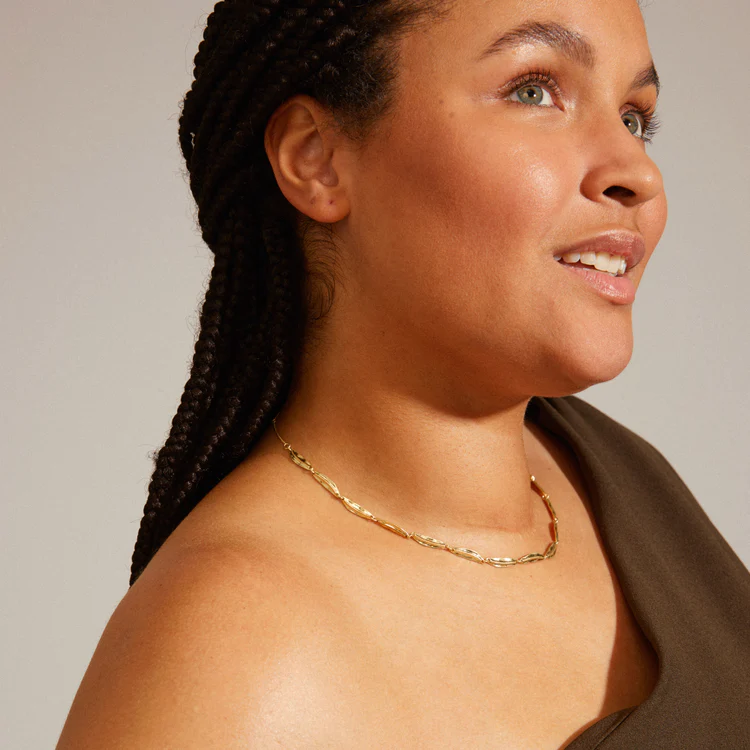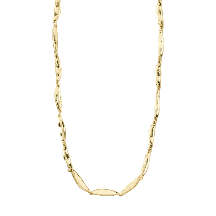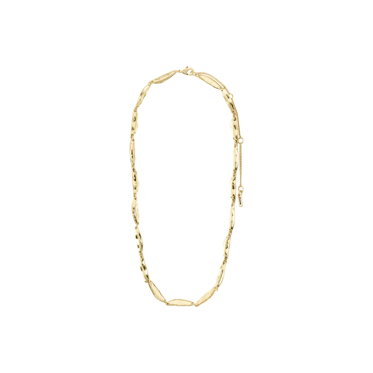 Be proud of your history! Shine away with Pilgrim’s necklace from the ECHO series. An elegant piece with slender leaf links gives you a necklace with genuine Pilgrim spirit! Nature is our greatest source of inspiration, and with the gold-plated ECHO chain, you get an organic and handcrafted look that suits all the styles of the season. Let it shine on its own as a true classic, or style it in a layered look with your other favourite chains. Measures 38 cm + 12 cm extension chain and is made from a min. of 75% recycled material.
