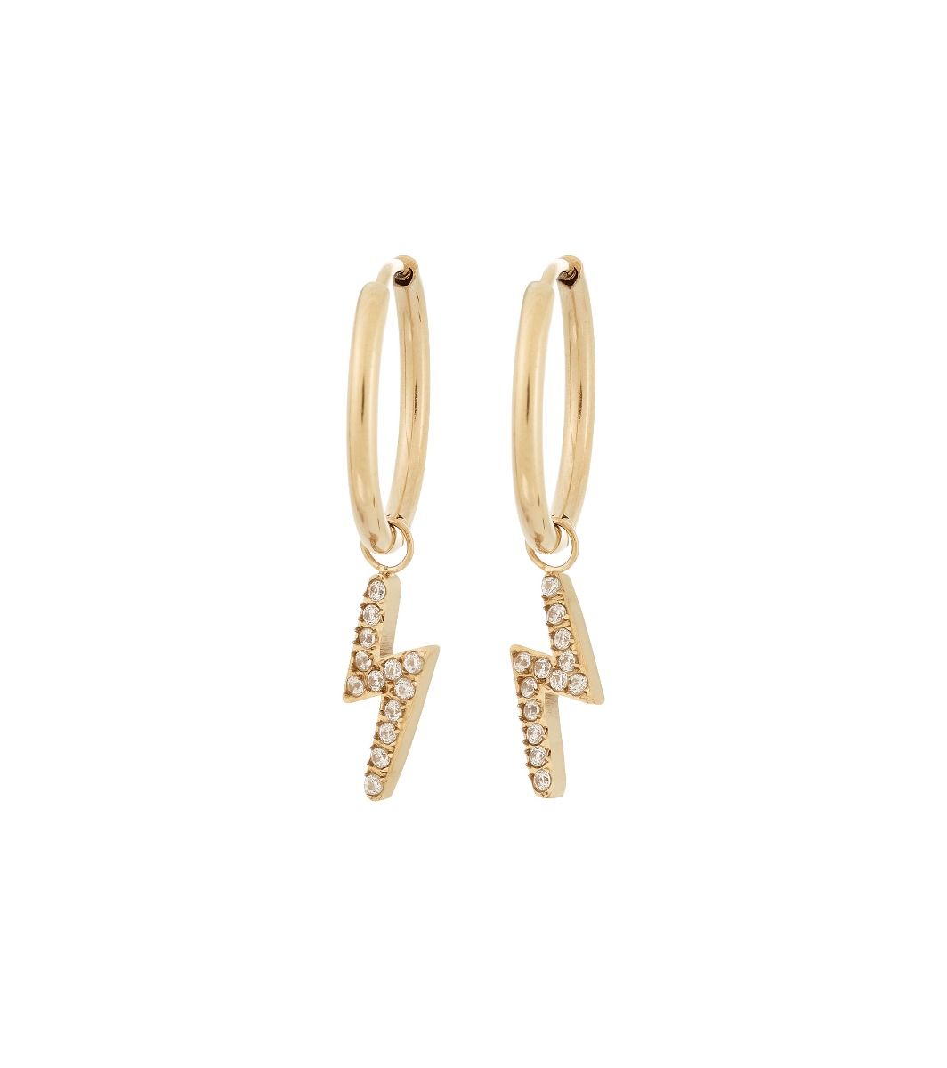 In our classic Lightning line, the lightning bolt has been revamped with clear stones which bring the retro symbol to life. In the Lightning Sparkle Hoops, the gorgeous lightning bolt hangs beneath the ring, seen here in shiny 14K gold plating. Combine the earrings with several pieces from the Lightning Sparkle line.