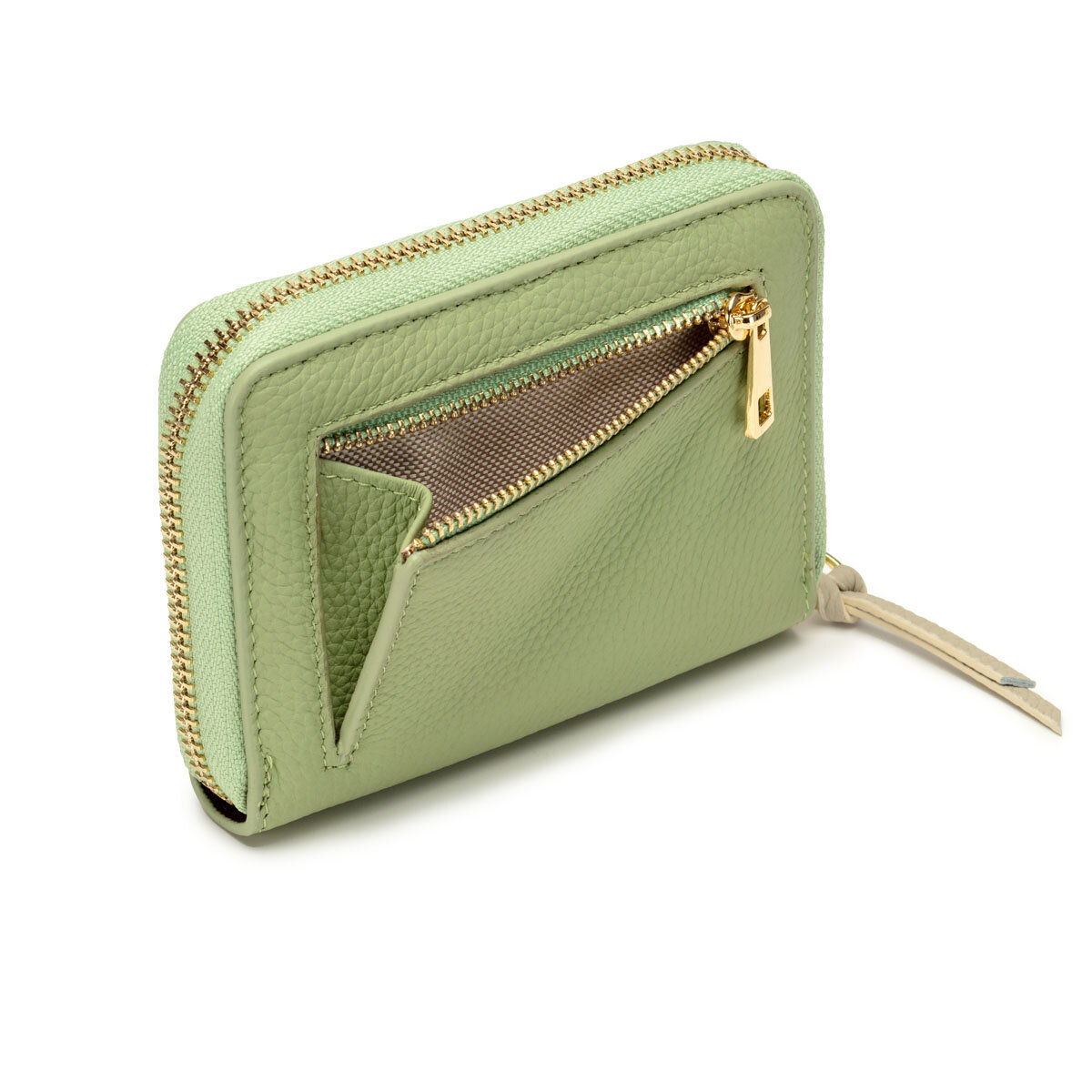 Featuring subtle gold fittings, the Knot design leather zip pull and matching purse interior complements perfectly with the main body leather colour.