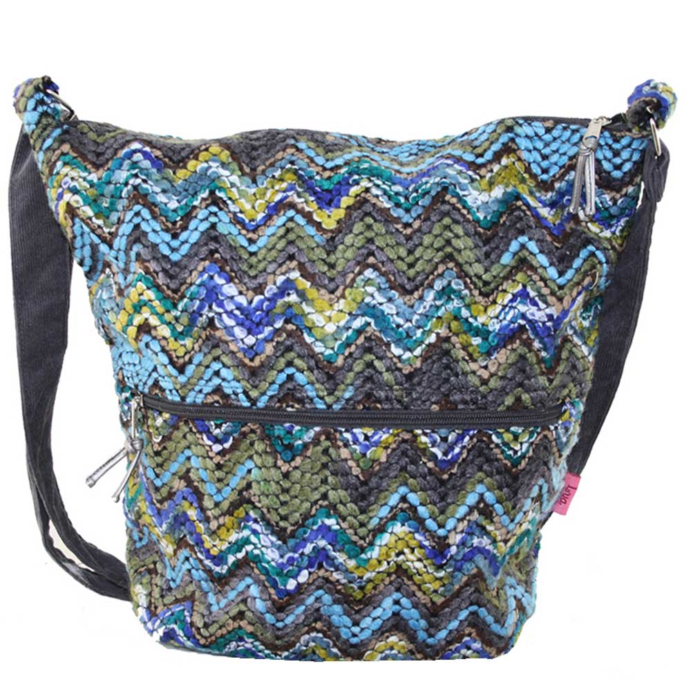 Best selling large messenger slouch bag shape in chevrons fabric.