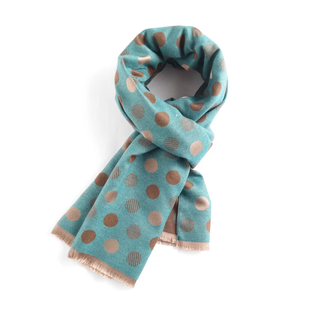 Lovely two tone, slightly heavier weight, reversible scarf with classic spot design.