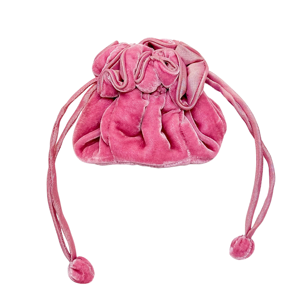 Luxurious silk velvet draw-pull pouch for jewellery. With little internal pockets. Looks beautiful on a dressing table or equally, a perfect travel accessory for jewellery.