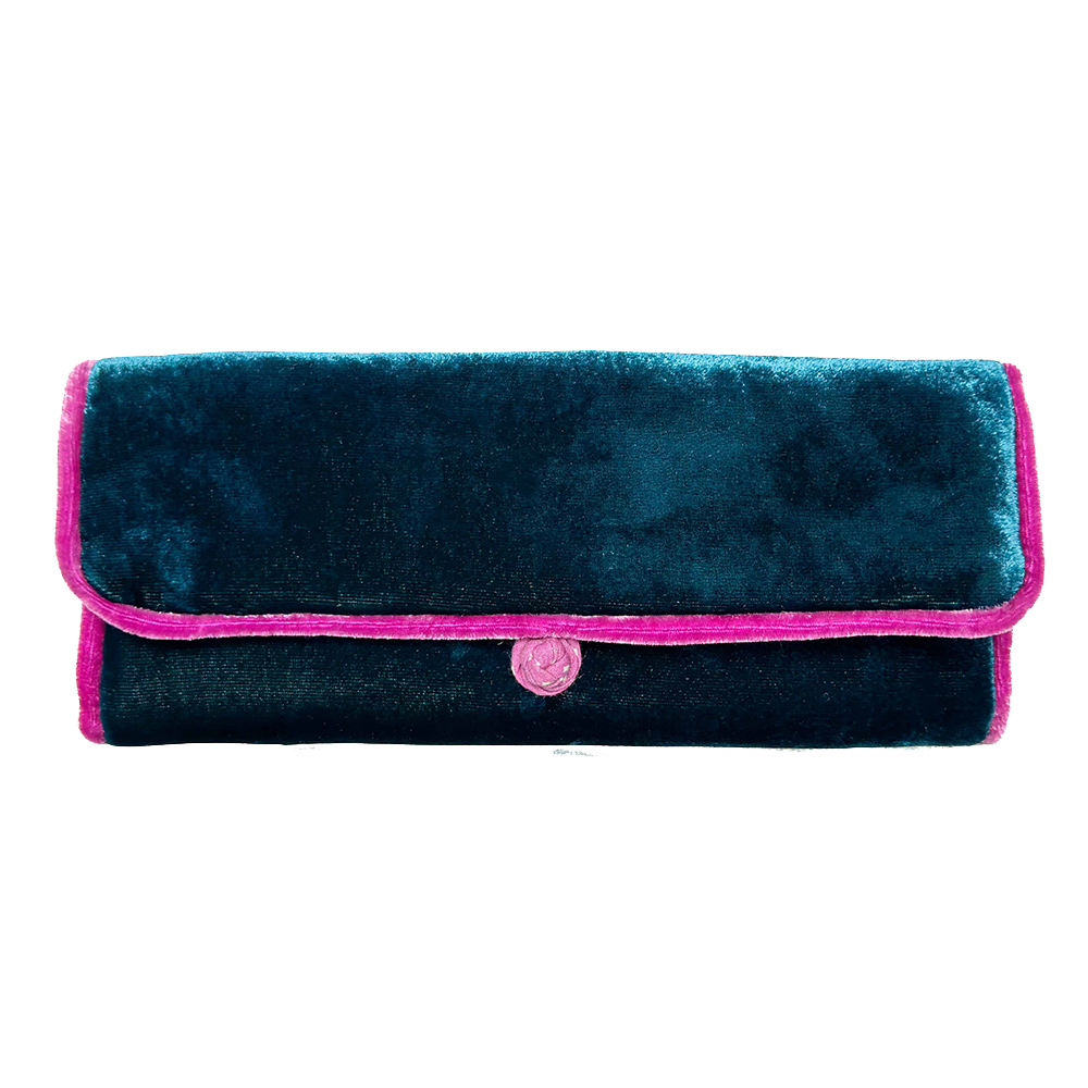Lua Plain Velvet Jewellery Roll – Dark Turquoise
