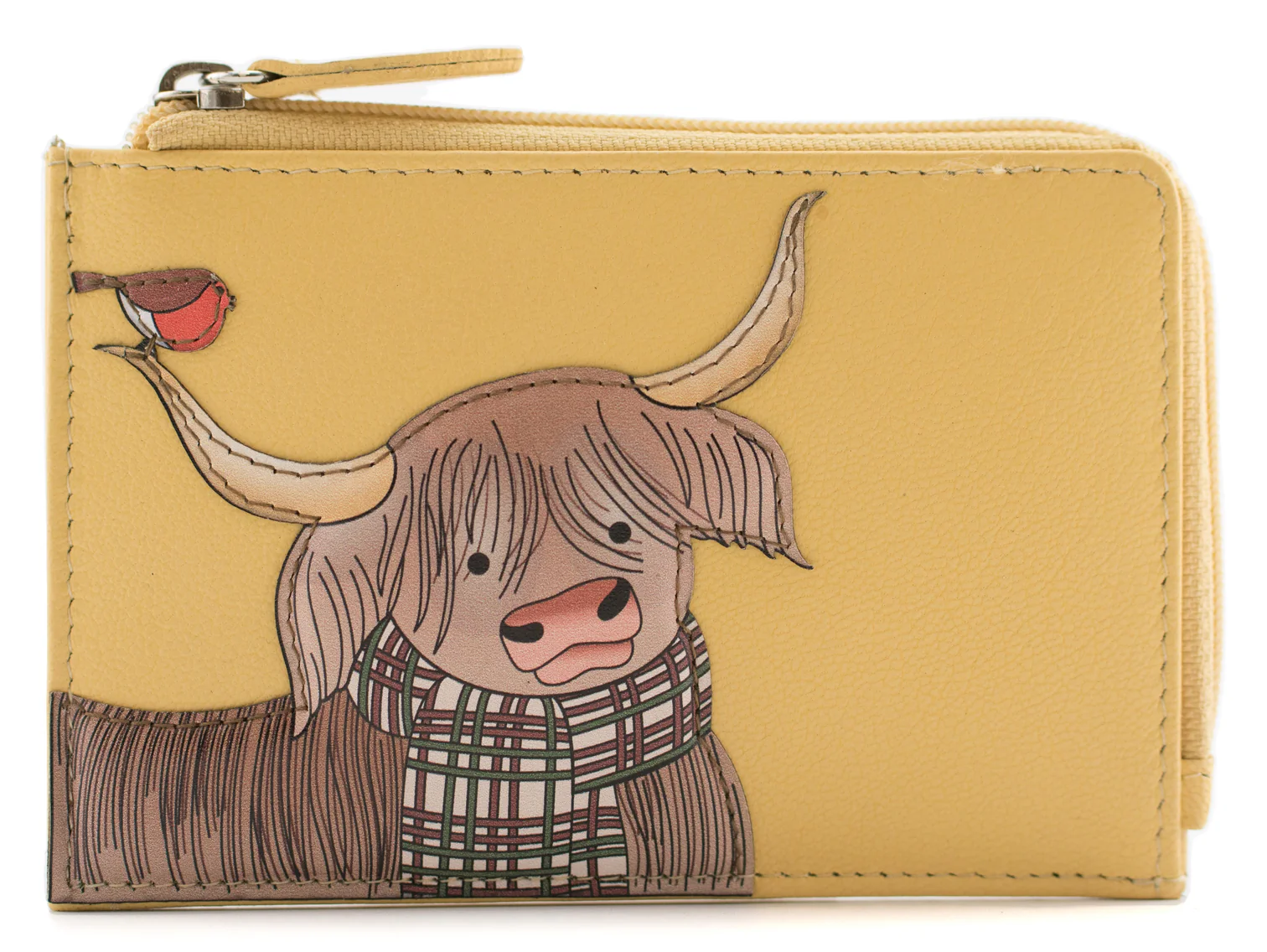 Simple and slim, this adorable highland cow & robin coin purse will fit in your pocket and the smallest of bags. Handcrafted from soft leather and holds your loose change and cards all together. Packaged in a dust bag.