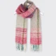 A lovely Pink toned Scarf is a perfect addition to your autumn winter wardrobe. Whether you loop it around your neck for added warmth or drape it over your shoulders, this scarf will keep you warm and cosy all winter long. It has a long fringed edge and a felted finish.