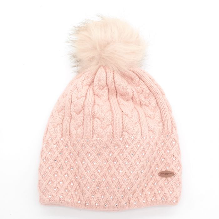 Add the final touch to your autumn and winter wardrobe with this warm hat, designed with beautiful diamantes and finished with a faux fur pom pom.