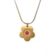 Flower-shaped, gold-plated stainless steel pendant with a decorated ceramic.