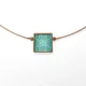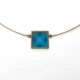 A gold-plated stainless steel framed square decorated ceramic strung on a nylon-coated stainless steel 17.5″ wire.