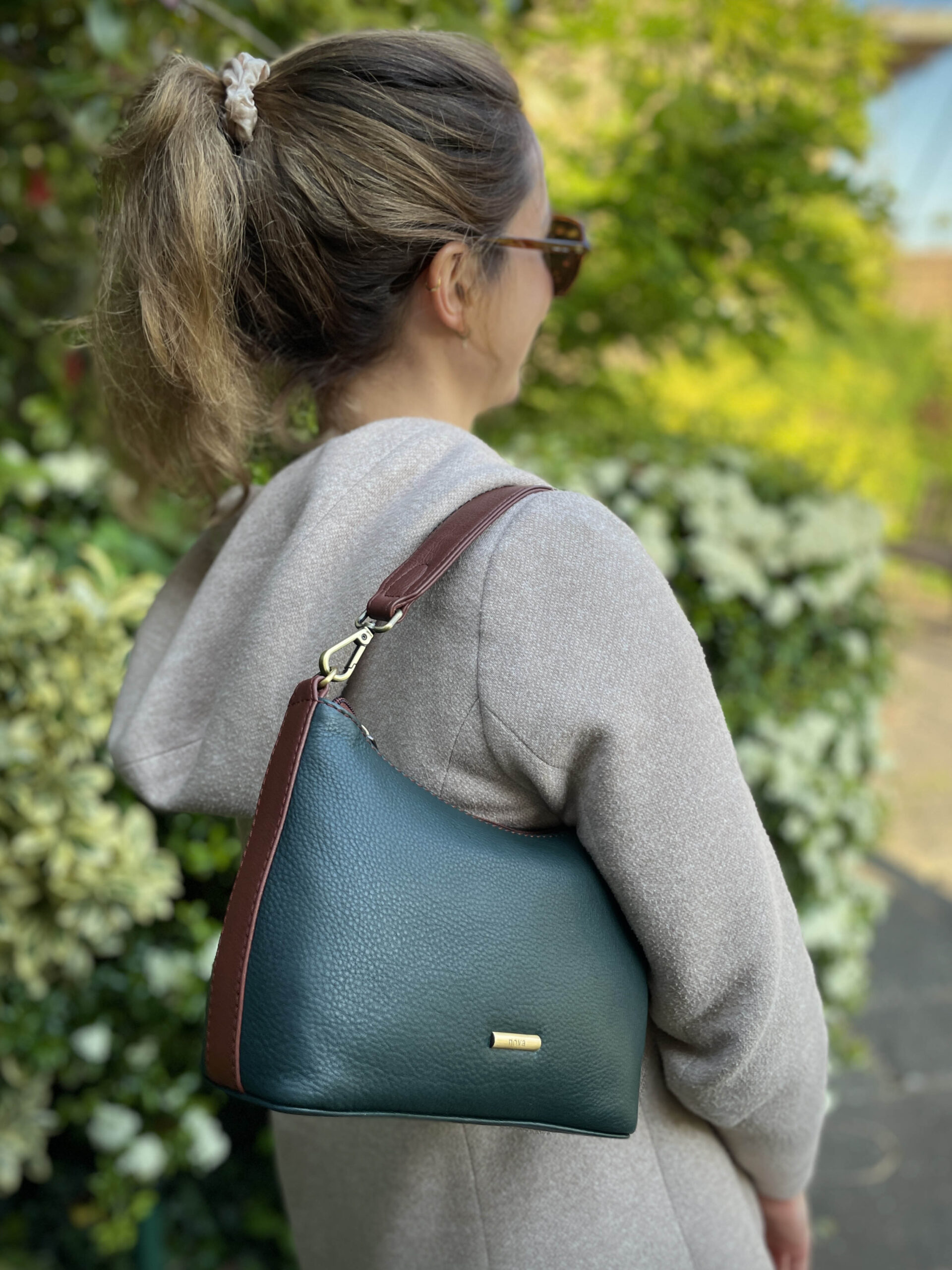 Nova Leathers Across Body Bag – Dark Green/Tan