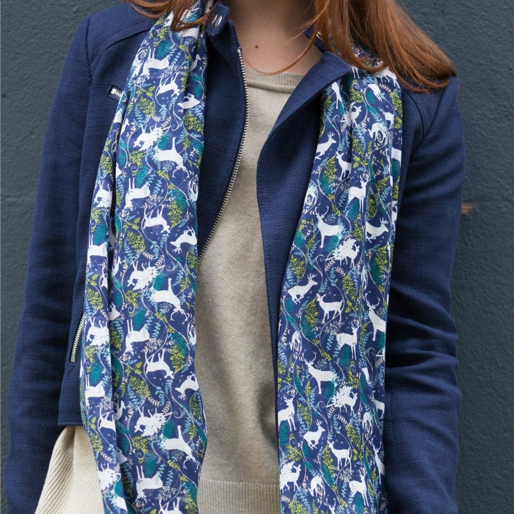 Be the first to review “Peony Reindeer Print Scarf – Navy”