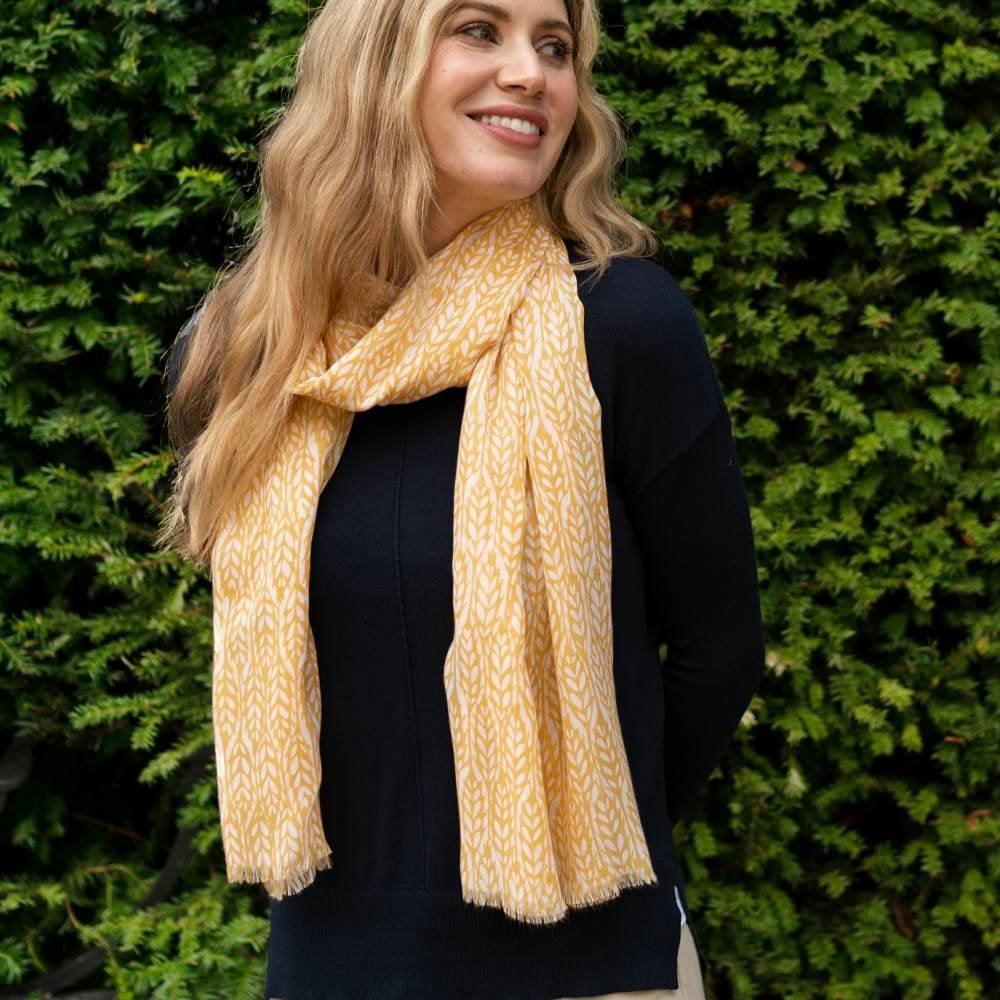 Be the first to review “Peony Wheat Print Scarf – Yellow”
