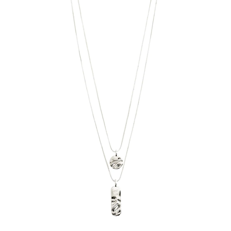 Beauty in a blink! Here you get the key item of the season as two separate necklaces in one set. The chains are silver plated and have round and elongated coin pendants with a wavy texture that catches the light and brings lots of shine and personality to your look. Mix them with several of your favourite chains for a trendy layered look, or wear them separately for a simple and stylish look. The necklaces measure 42 / 38 cm + 12 cm extension chain and are made of min. 75% recycled material.