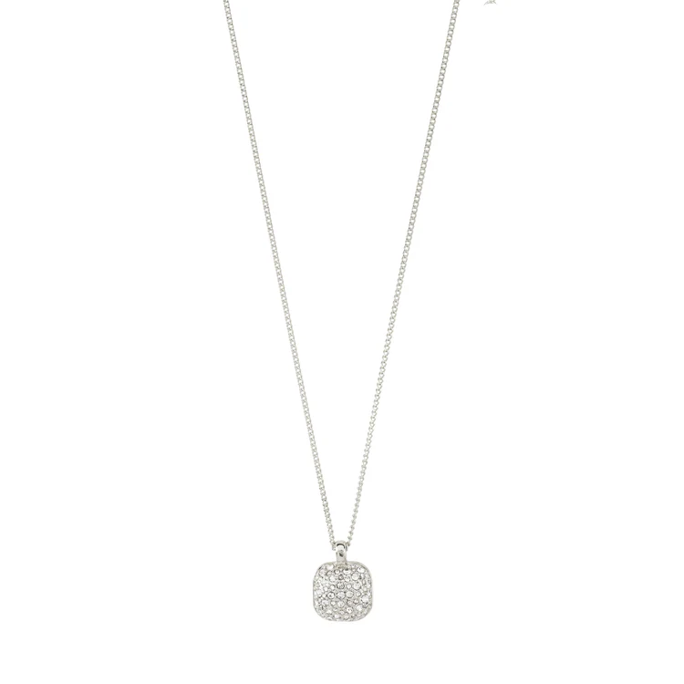 Discover your inner strength with this silver-plated necklace from Pilgrim, a recycled item made from 95% recycled material. The pendant’s sparkling Preciosa crystals catch the light and radiate power and energy. A stylish and elegant centrepiece for everyday use and glammy outfits. The necklace measures 40 cm + 9 cm extension chain.