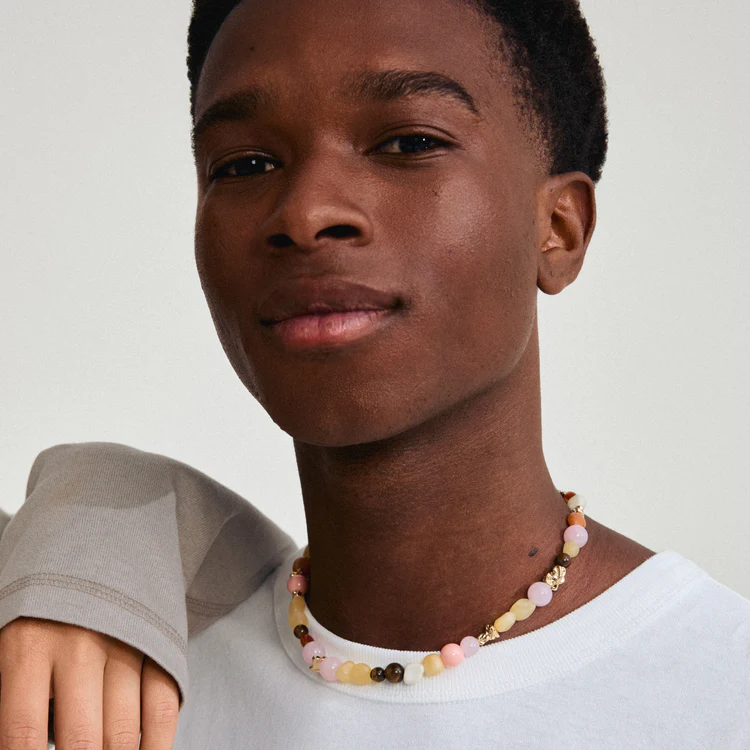 • Combination of semi-precious stones and glass beads