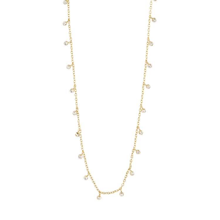 Share the light! Gold plated necklace with pendant of shiny Preciosa crystals. A classic must-have piece that highlights a romantic and feminine feel. Be inspired by the chain’s sparkling crystal drops, and mix with other jewellery in light and harmonious designs. The necklace measures 38 cm and has an extension chain of 9 cm.