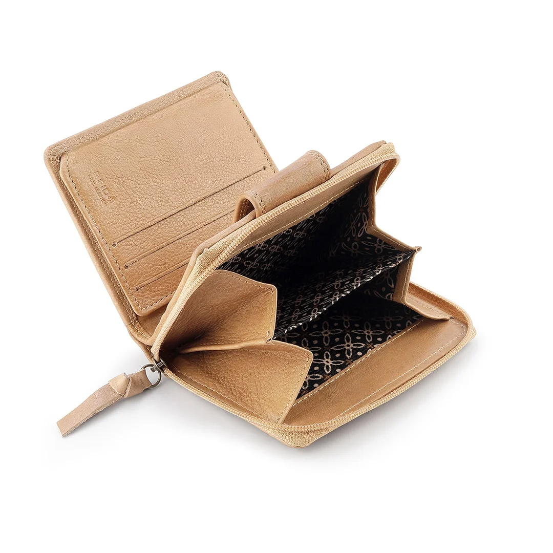 Primehide RFID “Selena” Washed Cancun Small Trifold Leather Purse – Sand