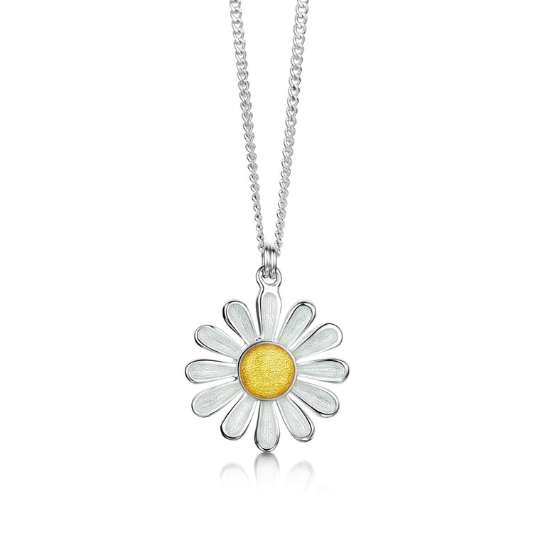 Sheila designed this range using a photograph her husband had taken as her inspiration. Exquisitely made with sterling silver with white and sunshine yellow enamel. For every Daisies item purchased Sheila Fleet donate funds to charitable organisations in Orkney, Scotland, helping children in need.