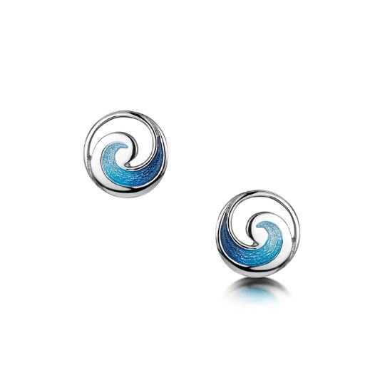 These small Pentland stud earrings in sterling silver each feature a continuous wave design, hand-enamelled in ‘Pentland’ enamel in our workshop in Orkney.