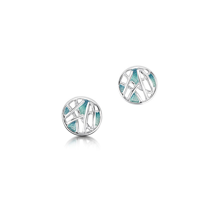 A firm favourite of Sheila, she is quite often seen wearing pieces from the iconic Creel range.  The random enamelled sections represent the trapped water inside the creel as it is pulled from the sea.  Sterling silver.