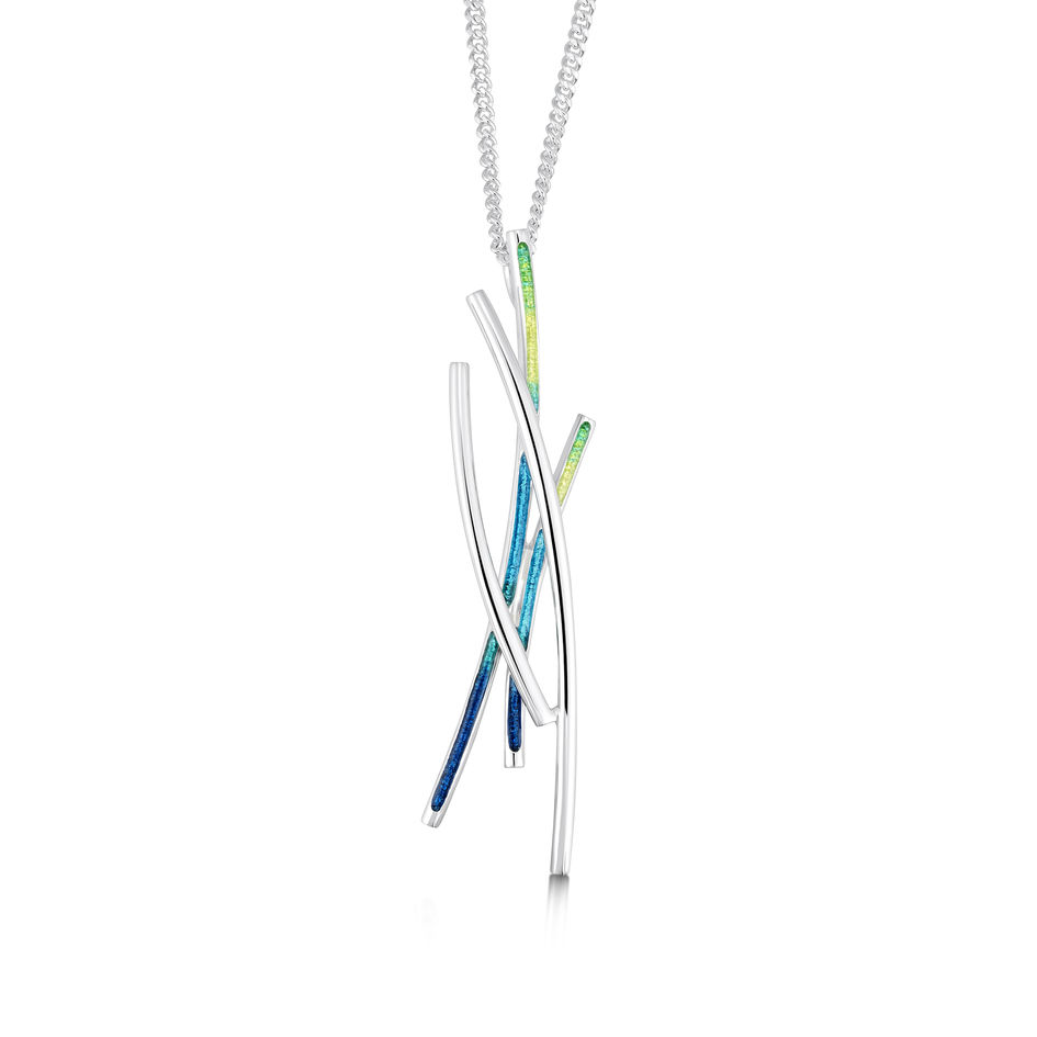The shoreline of Orkney was the inspiration for the Wild Grasses collection. The swaying, in the wind, of the long grass and the differences in the colours depending on the light are depicted in these gorgeous pieces. Sterling silver.
