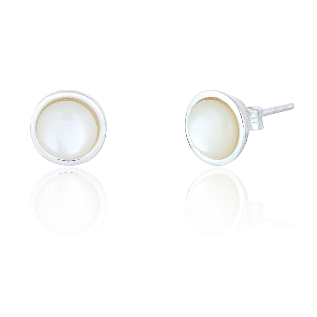 Simple yet elegant mother of pearl stud earrings in a circular setting.