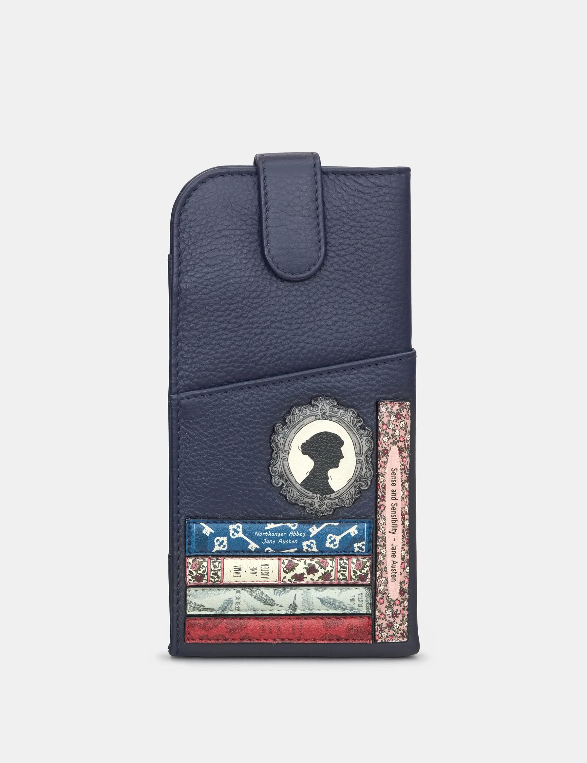 Yoshi “Jane Austen Bookworm Library” Leather Glasses Case – Navy