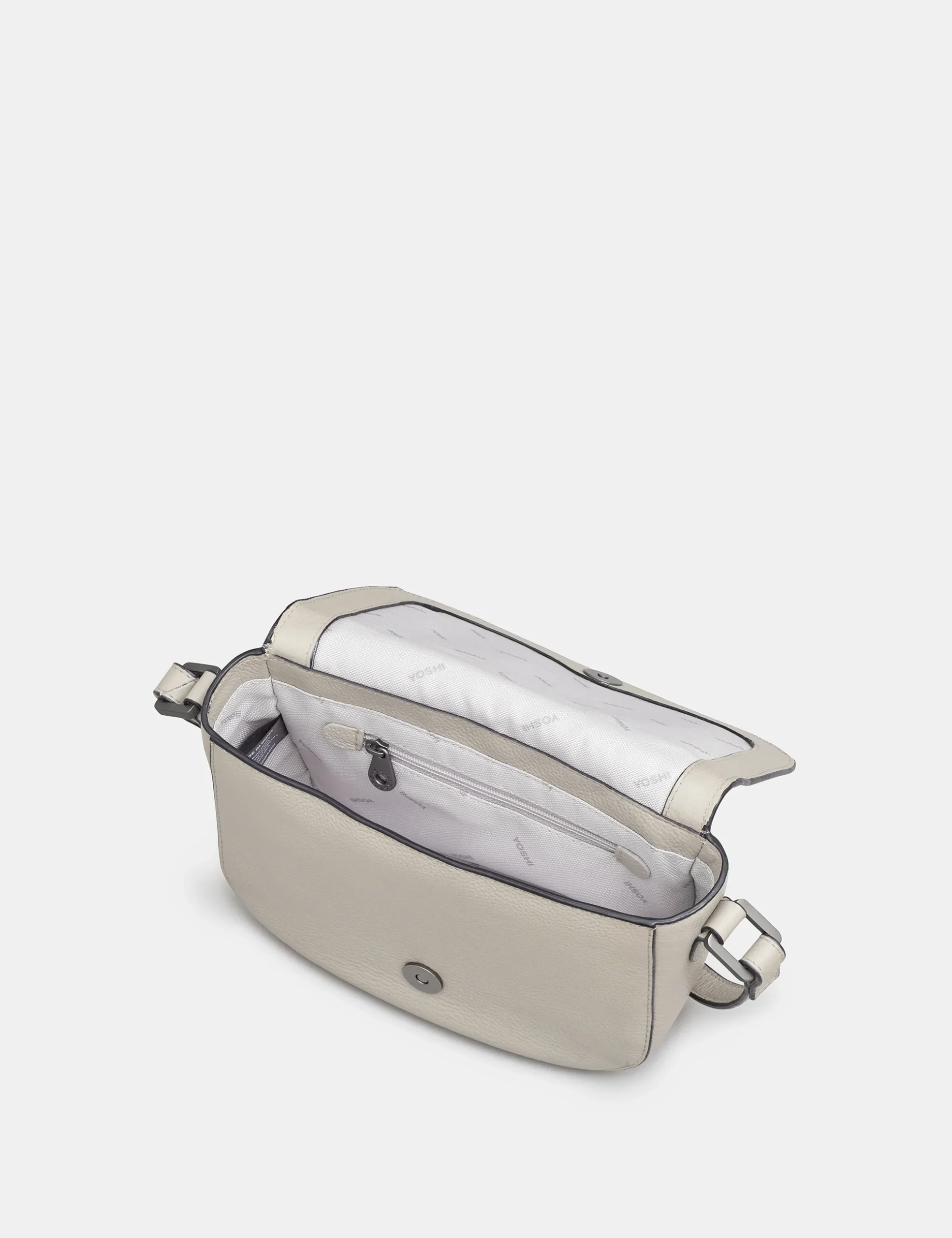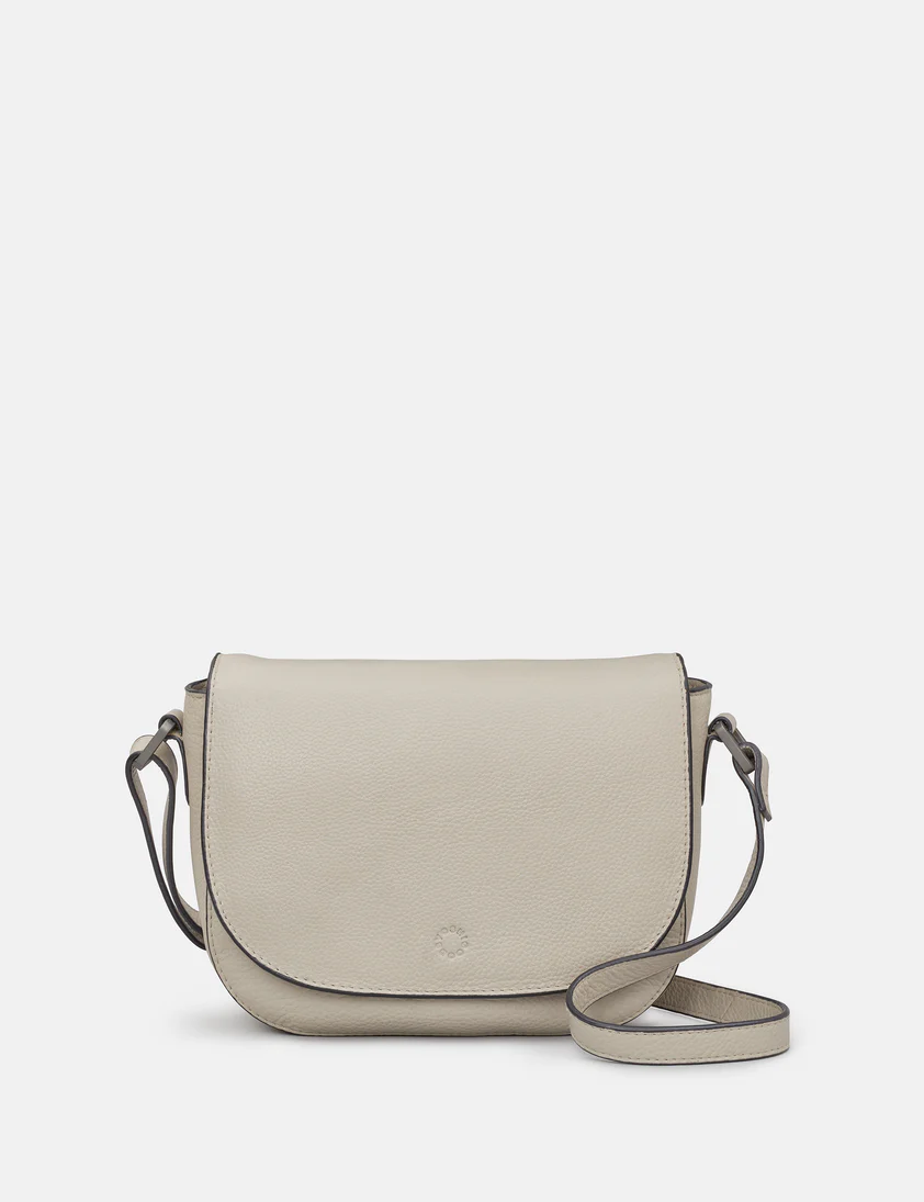 Yoshi Leather “Clarendon” Flap over Cross Body Bag – Warm Grey