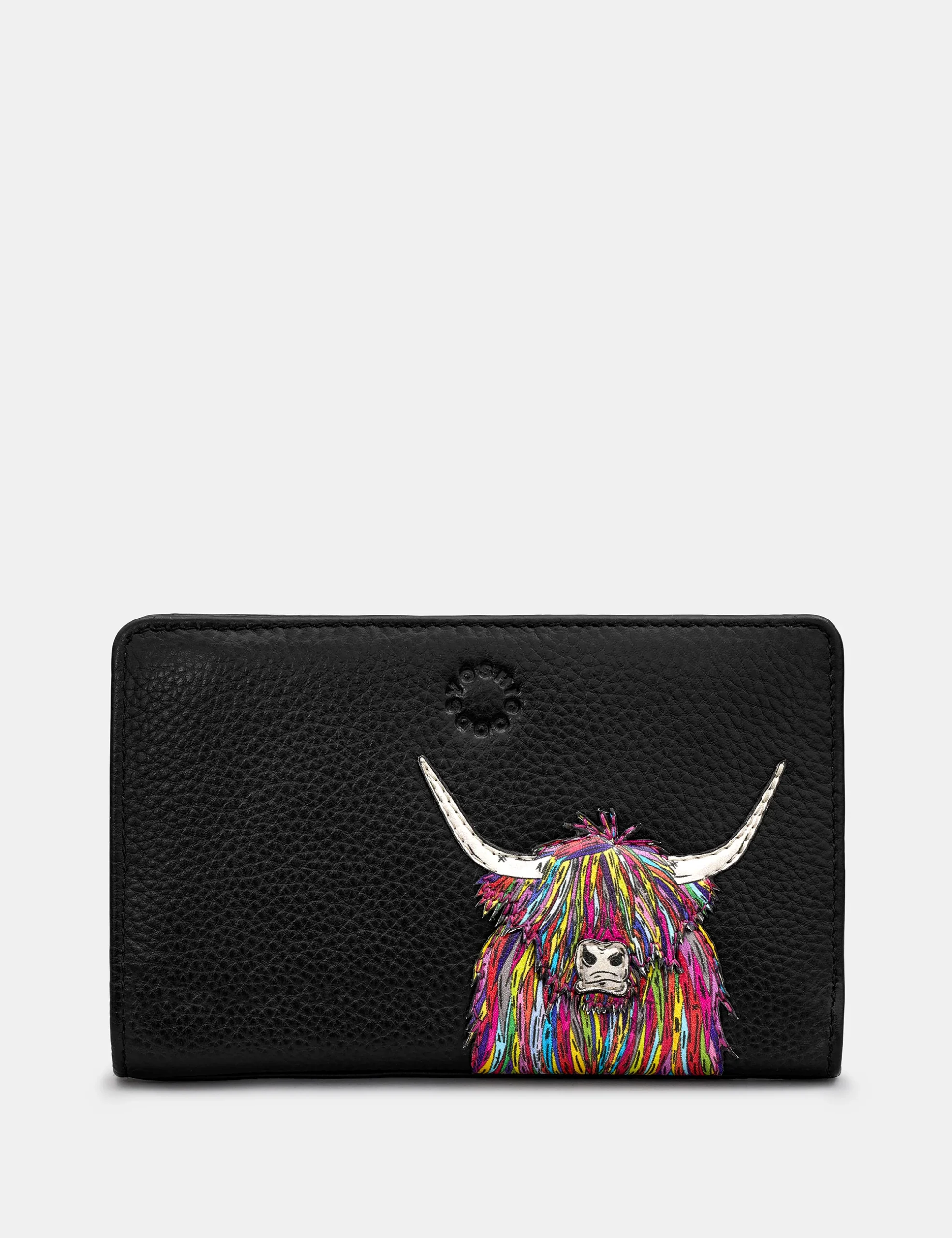 Yoshi Leather “Highland Cow” Zip Around Purse – Black