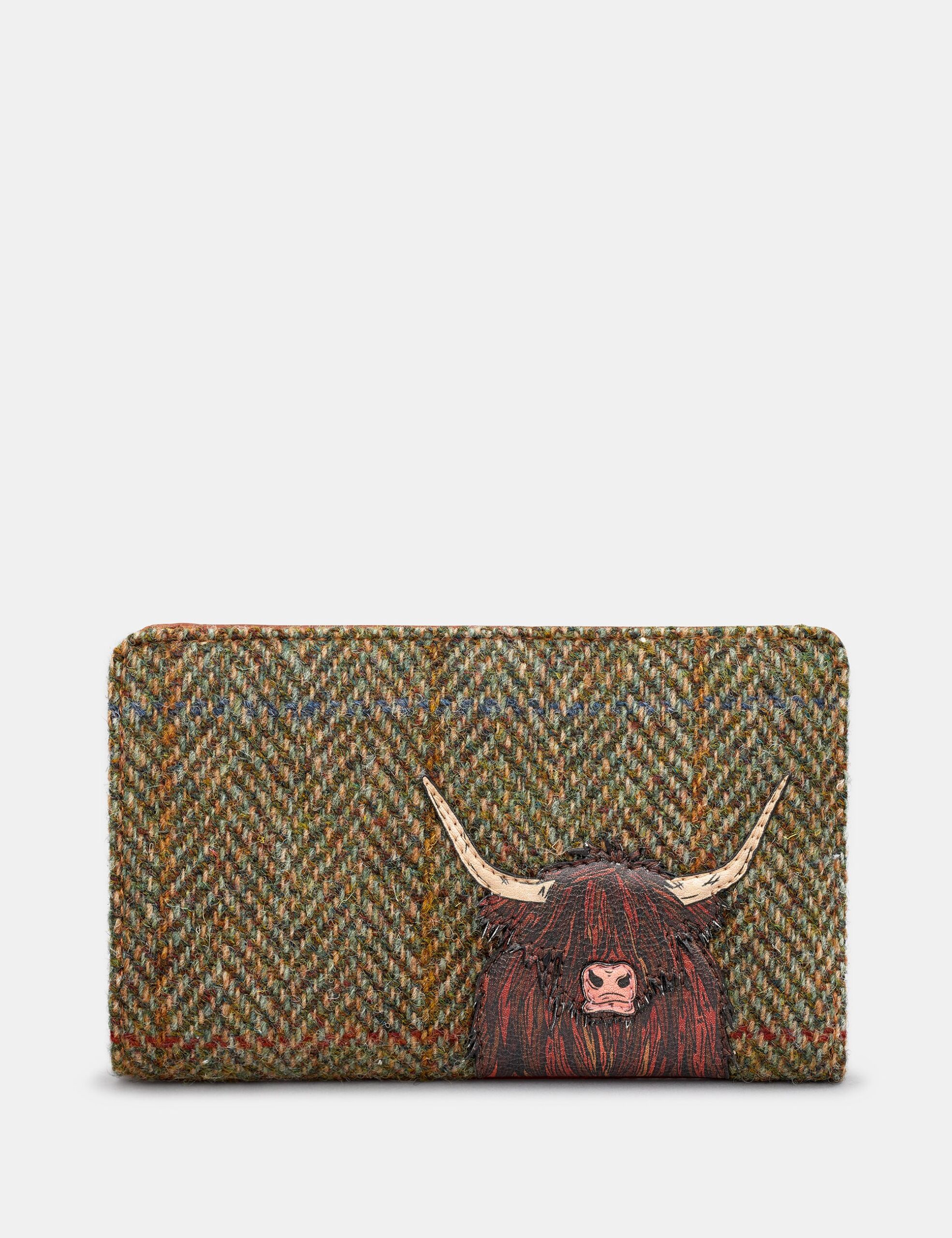 Yoshi Leather “Highland Cow” Zip Around Purse – Tweed Brown