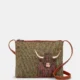 This brown leather Highland Thistle women’s cross body bag features a tonal highland cow applique which sits on top of the Harris Tweed fabric which then contrasts against the black leather. With its zip top fastening, back pocket, and storage space inside, this women’s across body handbag is great at all occasions.
