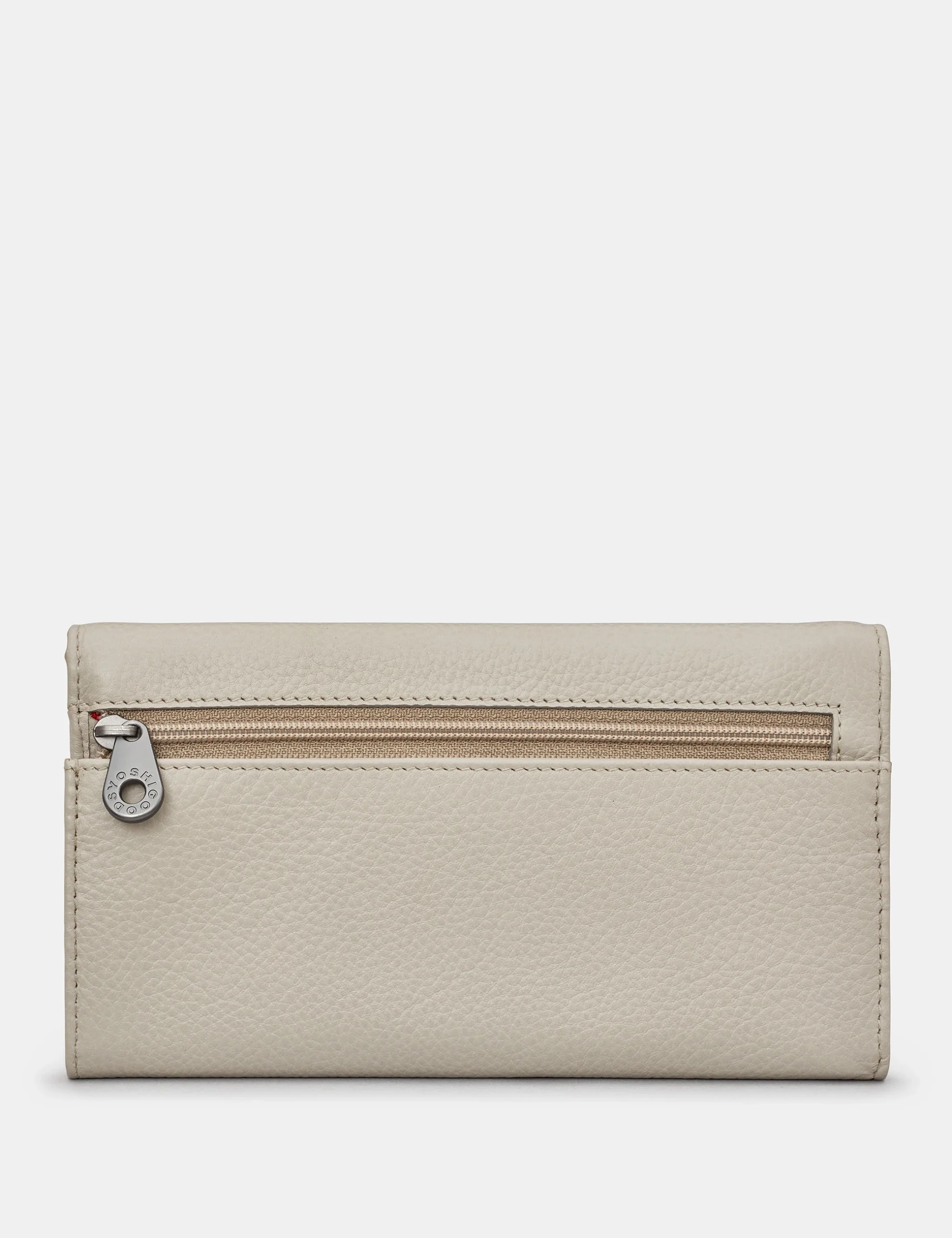 Yoshi Leather “Hudson” Flap Over Purse – Warm Grey